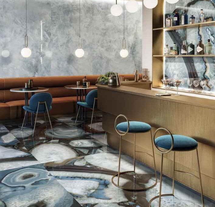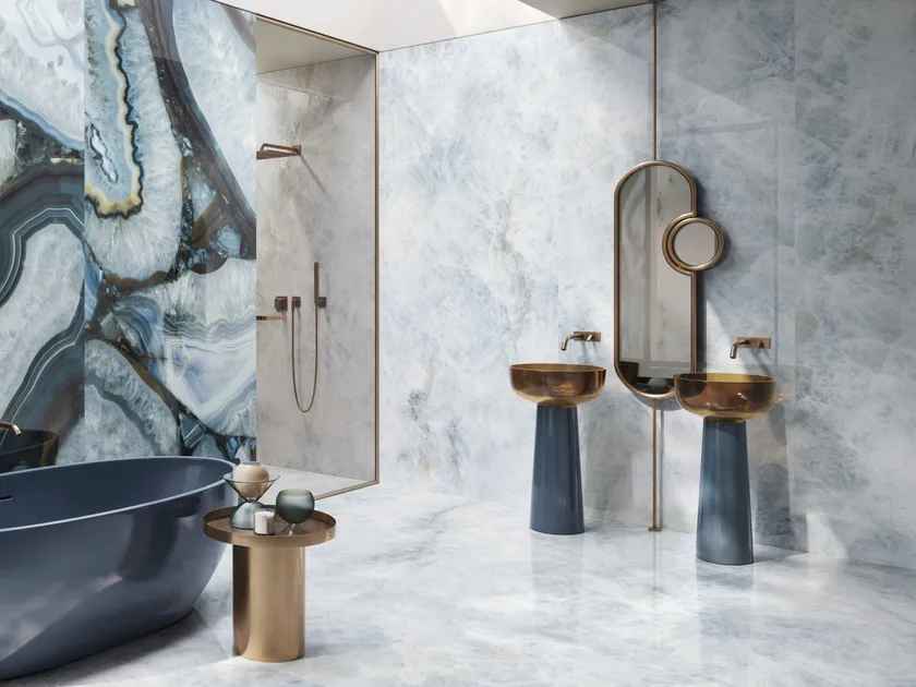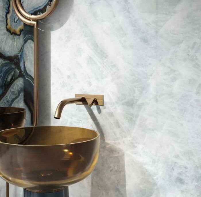 The colour and structure of the crystalline network of the three catalogue variants are the outcome of strict selection of the natural models, reproduced with state-of-the-art decorating technologies.