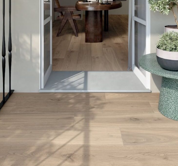 The Fumè and Castano colours are used to create contemporary settings with a more modern or more traditional character; Beige and Dorato are used for extremely welcoming and bright interiors. The collection has a soft-touch finish and an extremely natural character. The floors reveal a unique material, whose surface reflects light with slight chiaroscuro.