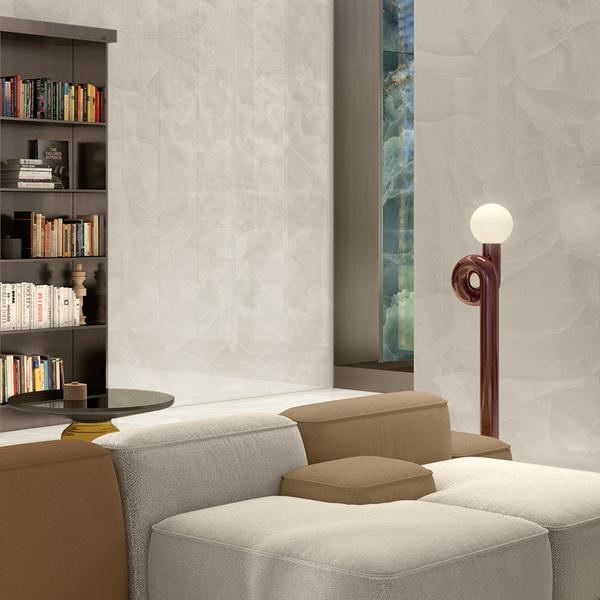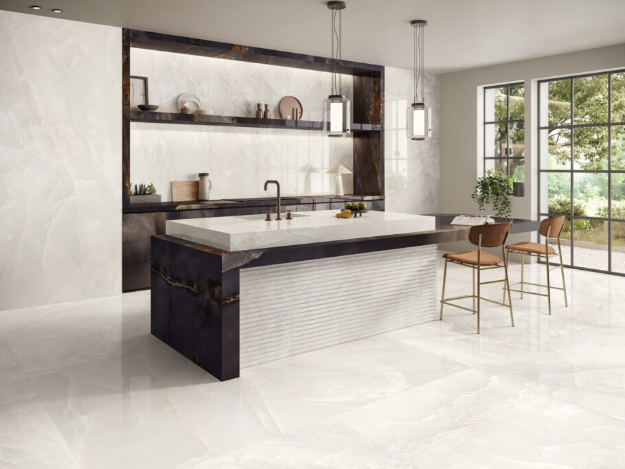 Onyx is the stone at the centre of the new Tele di Marmo Onyx collection by Emilceramica, that generates a seductive, sumptuous array of tiles.