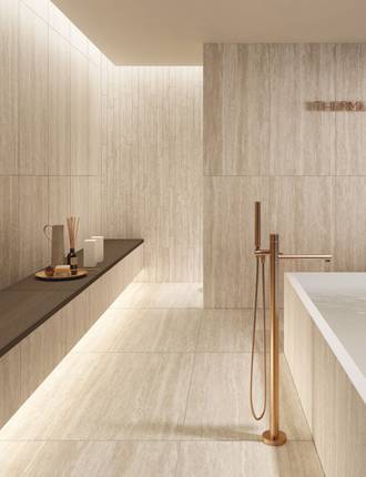 Astrum is a porcelain stoneware tile collection inspired by one of the most widely used materials in architecture: travertine. The charm of constructions made of durable, compact natural stone, made to last for centuries, is reinterpreted with modern taste, sensitive to the needs of contemporary design.