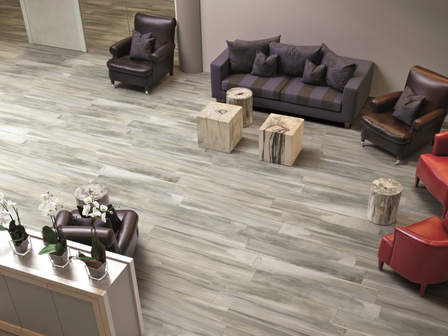 Stained Cement is a essentially a hybrid of concrete and wood plank flooring. Inspired by the sea, this tile has a naturally weathered appearance, as though it has been worn by salt and spray. This collection is available in four majestic colors: White, Grey, Taupe, and Pearl.
