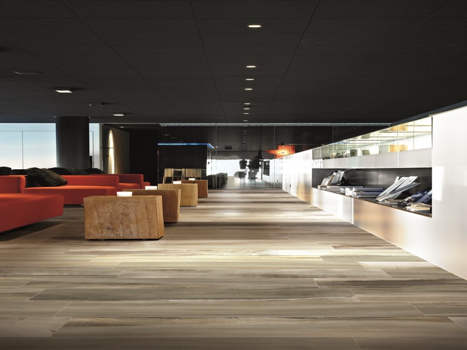 Stained Cement is a essentially a hybrid of concrete and wood plank flooring. Inspired by the sea, this tile has a naturally weathered appearance, as though it has been worn by salt and spray. This collection is available in four majestic colors: White, Grey, Taupe, and Pearl.