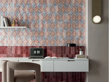 The series is complemented by Trend, modern backgrounds with a geometric pattern, and Amalfi, a tribute to the tradition of Mediterranean majolica Trend, modern backgrounds with a geometric pattern, and Amalfi, a tribute to the tradition of Mediterranean majolica conveing the essence of a land made of enchanting places.